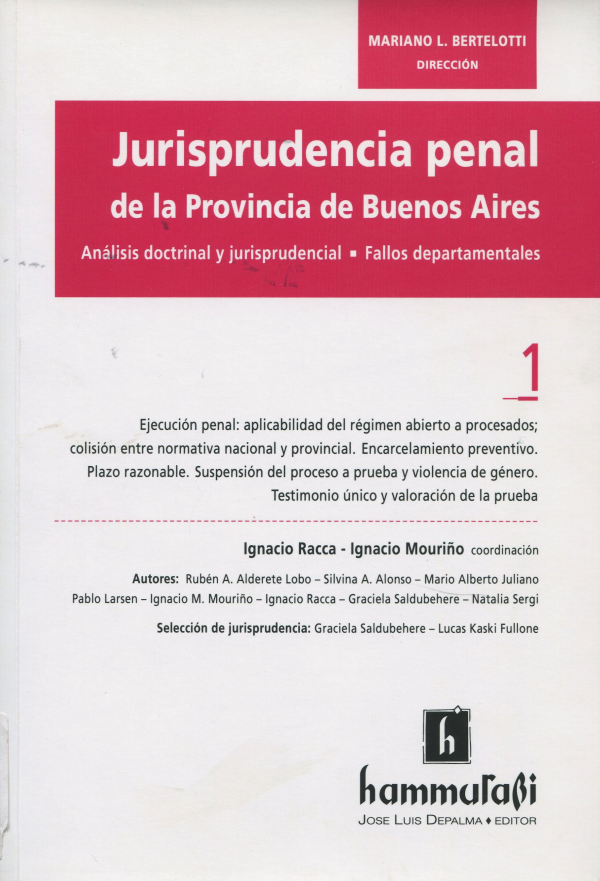 Jurisprudencia penal de la Provincia de Buenos Aires : análisis doctrinal y jurisprudencial : fallos departamentales : tomo I