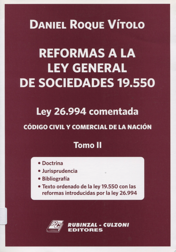 | 347.72(82) VIT t. 2 Reformas a la Ley general de Sociedades 19.550 : ley 26.994 comentada : código civil y comercial de la Nación : tomo II |