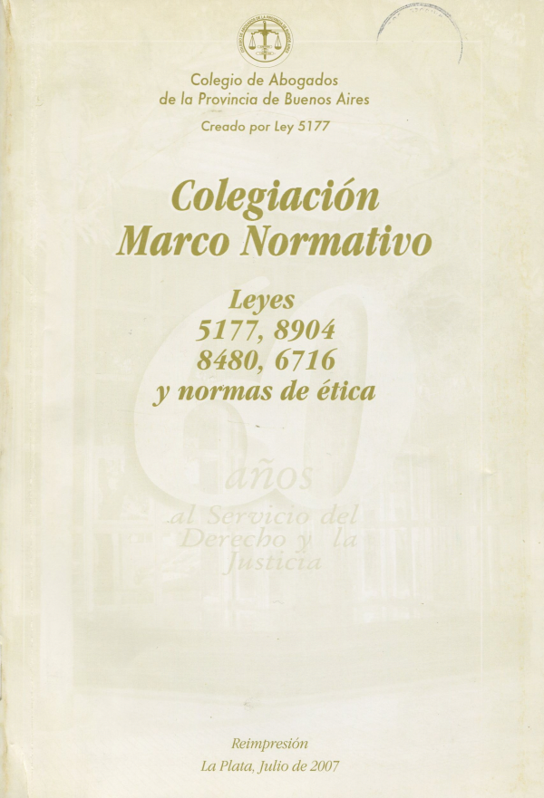 Colegiación legal : ley 5177 y su decreto reglamentario : ley arancelaria (decreto-ley 8904/77) : derecho fijo ley 8480 y sus pautas interpretativas : ley 6716 (régimen legal de la Caja de Previsión Social para Abogados) : normas de ética profesional : mandamientos del abogado. - Buenos Aires (Provincia)