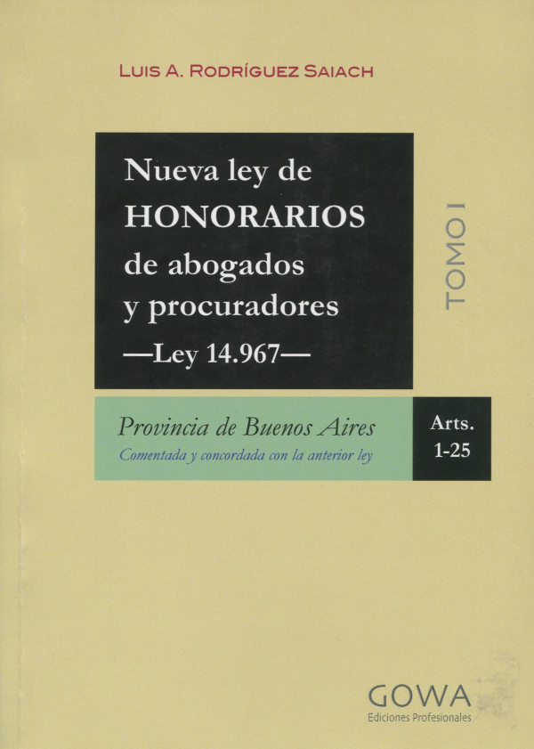 Nueva ley de Honorarios de abogados y procuradores : ley 14967 - Provincia de Buenos Aires comentada y concordada con la anterior ley : tomo I : arts. 1-5.